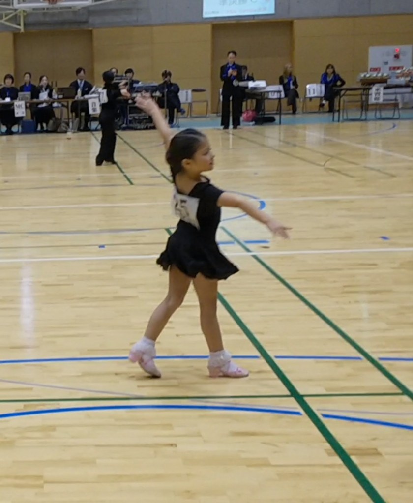 大まかに上記のようなグループレッスン内容の中、とてもいいな!と感じるのがお互いのダンスを見てジャッジしてみる機会があることです。同じ内容のレッスンを受けた後にお互いのダンスを見合う。子供の感性を刺激し気づきを与える本当に良い機会だと思います。それに子供たちは見られることでもっともっと頑張ろうとします。練習の中で最大限に頑張ろうとして失敗したり上手く踊れないことは、自分より少し上のレベルの練習に繋がります。先生の前で上手く踊ろうとして小さく踊るよりずっと実りあると思います。だってレッスンは学んで練習する場所ですから。練習で最大限以上に頑張ることは、発表の場や競技会でベストを尽くす演技につながっていくと思います。